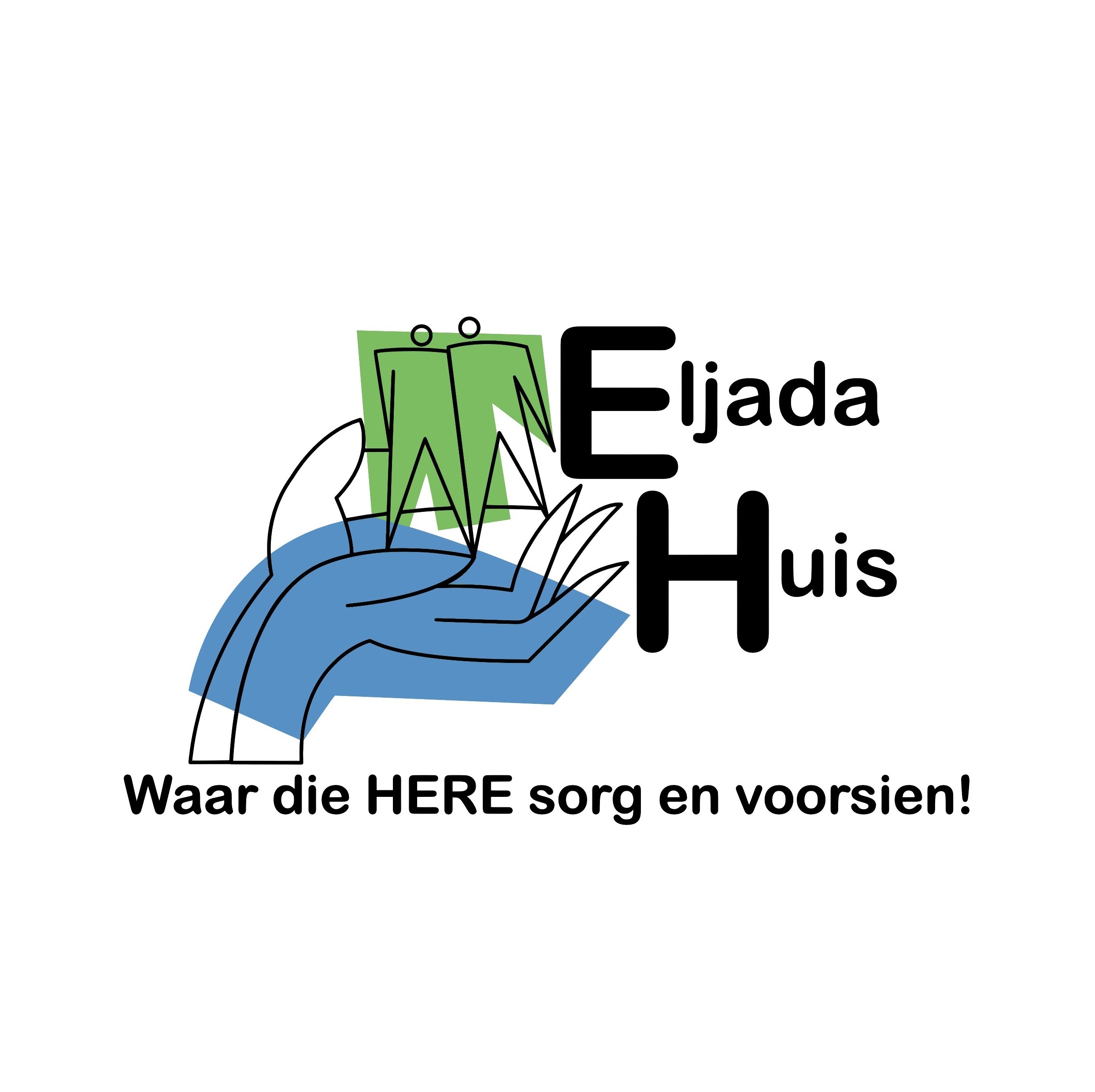 Ons embleem berus op baie spesifieke simboliek. Die blou is hemelse blou. Die groen verteenwoordig groei. Die hand onder is simbolies die hand van die Here waarin ons almal is. Die mense verteenwoordig die gemeenskap aan die een kant wat hulp nodig het en die Eljada Huis (hand) as ondersteuning aan die ander kant maar ons sien onsself op ‘n gelyke vlak voor die Here.